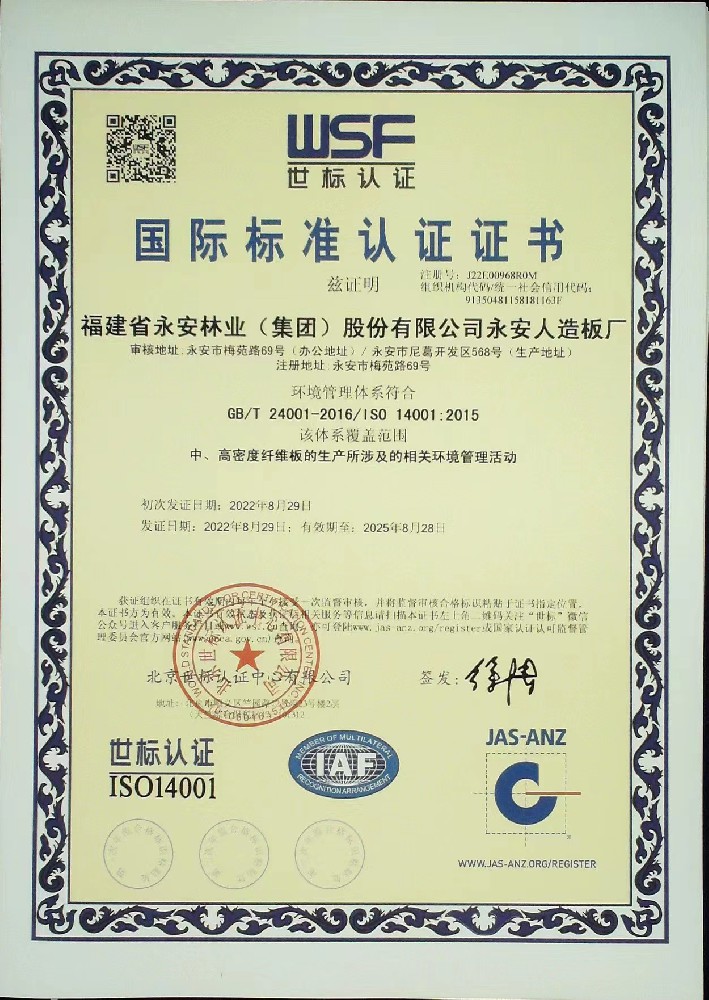 近日,福建省節能中心刊發報道——《綠色工廠典型案例丨福建省永安林業(集團)股份有限公司永安人造板廠》,現將報道全文分享如下——福建省永安林業(集團)股份有限公司永安人造板廠(以下簡稱永安人造板廠)成立于1998年2月,是福建省永安林業(集團)股份有限公司旗下分公司。永安人造板廠是以人造板生產和銷售為主的森工企業,也是國家高新技術企業。2021年永安人造板廠10項纖維板產品獲得福建省綠色設計產品榮譽稱號;2022年永安人造板廠獲得福建省綠色工廠榮譽稱號;2024年永安人造板廠獲得國家級綠色工廠榮譽稱號。一、人造板行業領先企業永安人造板廠一直致力于節能減排綠色發展轉型,先后通過了標志產品合格認證和產品安全認證、I型中國環境標志產品認證、ISO9001:2015質量管理體系認證、ISO14001:2015環境管理體系認證、ISO45001:2018職業健康安全管理體系、ISO50001:2018能源管理體系、FSC森林認證,并獲得中國木地板行業市場影響力“十大品牌”稱號;榮獲纖維板類首批“國家免檢產品”、纖維板類首批“中國名牌產品”稱號;永林藍豹地板、基材雙雙獲得“出口免驗”榮譽,成為中國木地板行業首家獲此殊榮的地板品牌。二、技術創新填補行業空白永安人造板廠現擁有17項發明專利技術、12項實用新型專利技術,并參與制定了7項國家標準,其中“一種低密度纖維板的制造方法”獲得國家發明專利和福建省專利獎,高強度輕質纖維板研發項目獲得三明市科技進步獎和福建省科技進步獎。2022年6月工廠研發申報的《防霉低密度裝飾線條專用纖維板開發及產業化項目》是福建省林業產業科技技術創新的唯一入選項目,該技術填補了林業行業空白,被列入2022年福建省技術創新重點攻關及產業化項目。工廠有E1、E0、F4星、無醛板以及“CARB/EPA”、FSC認證等產品。在人造板木片水洗及其污水處理循環使用方面,突破性地解決了MDF行業內的一大難題,在纖維板行業率先實現了污水零排放,使木片水洗及其污水處理技術在行業內處于領先水平。三、注重安全、綠色、低碳、環保近年來,永安人造板廠實施多項節能技術改造,生產效率和能源使用率顯著提升。如對能源工廠主引風機和干燥風機進行變頻改造,改造后節電顯著;熱磨有機木塞水全部經處理后廠內綜合利用,實現了工業廢水的零排放;砂光粉、板邊條、廢纖維等固廢綜合資源利用,2023全年資源綜合利用6598噸;在廢氣排放減量化改造投入600余萬元,進行干燥尾氣除塵系統改造項目,進一步降低干燥尾氣顆粒物的排放量;2023年工廠投資650萬元,開展“高效節能薪材上料系統與板坯預加熱系統節能改造”,年節約1579噸標煤,被福建省工業和信息化廳列為2023年省工業重點節能改造項目。各項環保排放指標、能耗指標等均優于國內行業先進值。四、優化能源結構,建設光伏電站作為2023年投運的4.25兆瓦分布式光伏一期項目的“姊妹篇”,光伏二期項目的加入使永安人造板廠光伏總裝機容量躍升至9.35兆瓦,年發電量約1000萬千瓦時,可滿足廠區20%以上的生產用電需求。兩期項目形成“屋頂+空地”的立體發電網絡,預計每年可節約標準煤約1230噸,減少二氧化碳排放近8500噸,大幅降低永安人造板廠的能源成本,顯著提升綠色能源在能源體系中的占比,開啟“能源低碳化”的實踐模式,為傳統制造業綠色轉型提供了實踐經驗和成功案例。五、生產廢水循環回用零排放永安人造板廠年產21萬立方米中密度纖維板生產線木片水洗工段所產生的廢水,經過全封閉循環處理系統,處理后的污水100%回收利用,實現廢水零排放,改變了傳統污水處理后直接排放的方式,有效減輕環境污染,該項技術在國內同行處于領先水平。未來,永安人造板廠將繼續貫徹落實國家關于生態文明建設的決策部署及“碳達峰、碳中和”的戰略發展要求,秉持創新驅動、綠色引領的理念篤定前行。企業將進一步深挖節能降碳潛力,積極實踐上市公司社會責任,將綠色低碳發展和企業可持續發展貫穿始終,為企業高質量發展賦能。